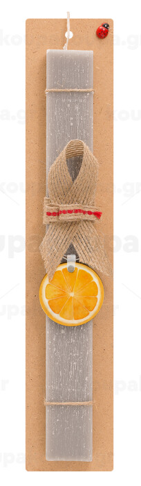 Πορτοκάλι, Πασχαλινή Λαμπάδα με ξύλινο μπρελόκ & κερί αρωματικό πλακέ (30cm) (ΓΚΡΙ)