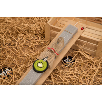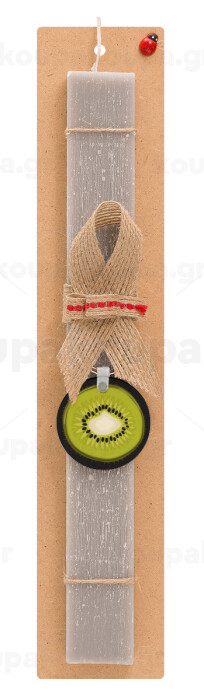 Ακτινίδιο, Πασχαλινή Λαμπάδα με ξύλινο μπρελόκ & κερί αρωματικό πλακέ (30cm) (ΓΚΡΙ)