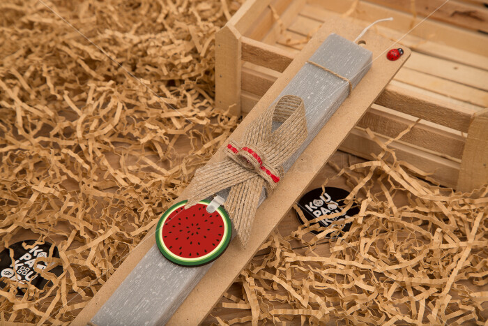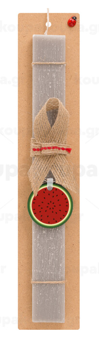 Καρπούζι, Πασχαλινή Λαμπάδα με ξύλινο μπρελόκ & κερί αρωματικό πλακέ (30cm) (ΓΚΡΙ)