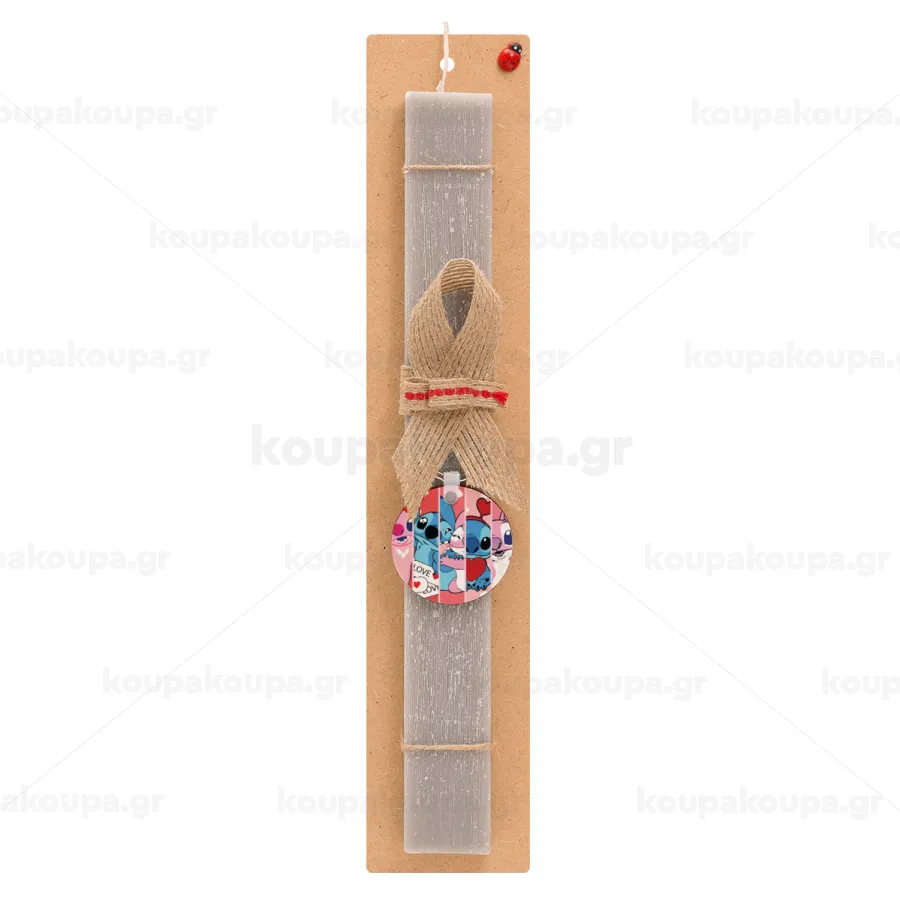 Lilo & Stitch Love, Πασχαλινή Λαμπάδα με ξύλινο μπρελόκ & κερί αρωματικό πλακέ (30cm) (ΓΚΡΙ)