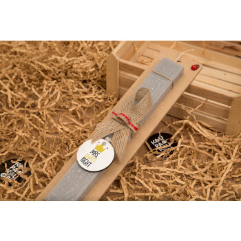 Mrs "Always" right, Πασχαλινή Λαμπάδα με ξύλινο μπρελόκ & κερί αρωματικό πλακέ (30cm) (ΓΚΡΙ)