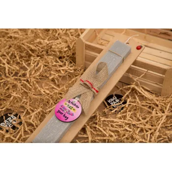 My favorite place is inside your HUG, Πασχαλινή Λαμπάδα με ξύλινο μπρελόκ & κερί αρωματικό πλακέ (30cm) (ΓΚΡΙ)