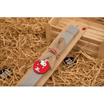 Snoopy takemy heart, Πασχαλινή Λαμπάδα με ξύλινο μπρελόκ & κερί αρωματικό πλακέ (30cm) (ΓΚΡΙ)