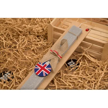 Σημαία Αγγλίας UK, Πασχαλινή Λαμπάδα με ξύλινο μπρελόκ & κερί αρωματικό πλακέ (30cm) (ΓΚΡΙ)