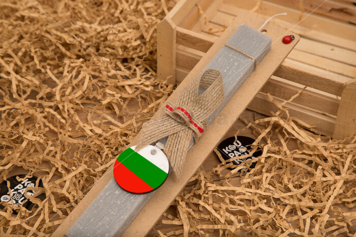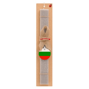 Bulgaria flag, Πασχαλινή Λαμπάδα με ξύλινο μπρελόκ & κερί αρωματικό πλακέ (30cm) (ΓΚΡΙ)