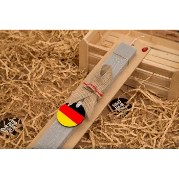 Germany flag, Πασχαλινή Λαμπάδα με ξύλινο μπρελόκ & κερί αρωματικό πλακέ (30cm) (ΓΚΡΙ)