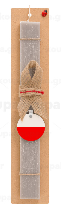 Poland flag, Πασχαλινή Λαμπάδα με ξύλινο μπρελόκ & κερί αρωματικό πλακέ (30cm) (ΓΚΡΙ)