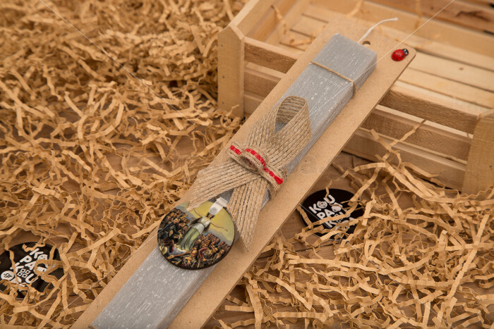 Η Ελλάς Ευγνωμονούσα, Πασχαλινή Λαμπάδα με ξύλινο μπρελόκ & κερί αρωματικό πλακέ (30cm) (ΓΚΡΙ)