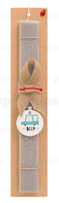 Car BEEP..., Πασχαλινή Λαμπάδα με ξύλινο μπρελόκ & κερί αρωματικό πλακέ (30cm) (ΓΚΡΙ)