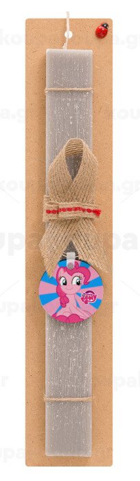 Μικρό μου Πόνυ, Πασχαλινή Λαμπάδα με ξύλινο μπρελόκ & κερί αρωματικό πλακέ (30cm) (ΓΚΡΙ)