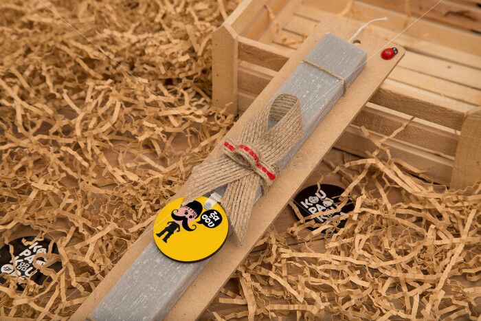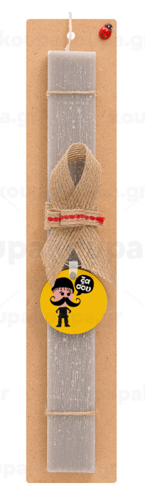 Κρητικός "Ξα σου", Πασχαλινή Λαμπάδα με ξύλινο μπρελόκ & κερί αρωματικό πλακέ (30cm) (ΓΚΡΙ)