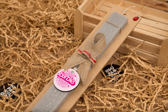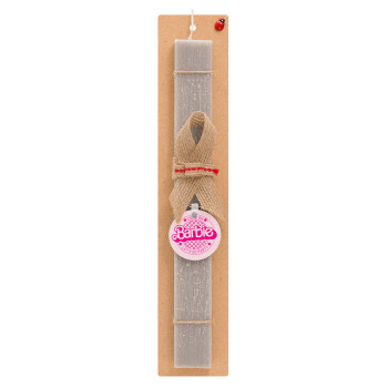 Come On Barbie Lets Go Party , Πασχαλινή Λαμπάδα με ξύλινο μπρελόκ & κερί αρωματικό πλακέ (30cm) (ΓΚΡΙ)