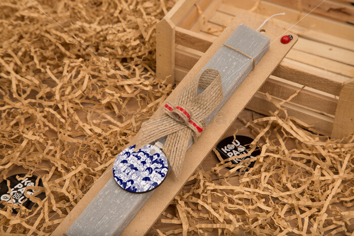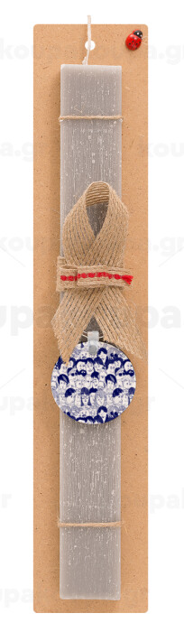 Άνθρωποι, Πασχαλινή Λαμπάδα με ξύλινο μπρελόκ & κερί αρωματικό πλακέ (30cm) (ΓΚΡΙ)