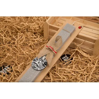Τερατάκια, Πασχαλινή Λαμπάδα με ξύλινο μπρελόκ & κερί αρωματικό πλακέ (30cm) (ΓΚΡΙ)