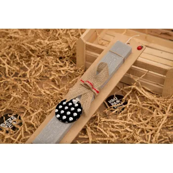 Σκελετοί b/w, Πασχαλινή Λαμπάδα με ξύλινο μπρελόκ & κερί αρωματικό πλακέ (30cm) (ΓΚΡΙ)