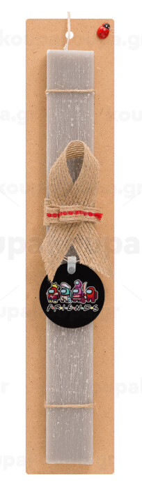 Among US Friends, Πασχαλινή Λαμπάδα με ξύλινο μπρελόκ & κερί αρωματικό πλακέ (30cm) (ΓΚΡΙ)