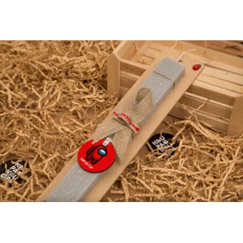 Among US i am impostor, Πασχαλινή Λαμπάδα με ξύλινο μπρελόκ & κερί αρωματικό πλακέ (30cm) (ΓΚΡΙ)