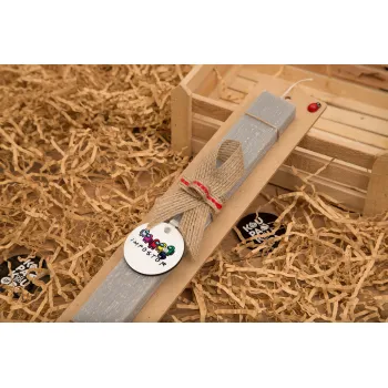 Among US impostor, Πασχαλινή Λαμπάδα με ξύλινο μπρελόκ & κερί αρωματικό πλακέ (30cm) (ΓΚΡΙ)