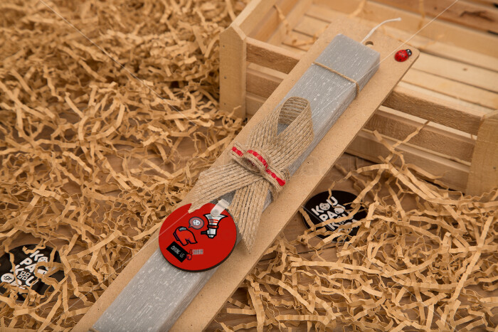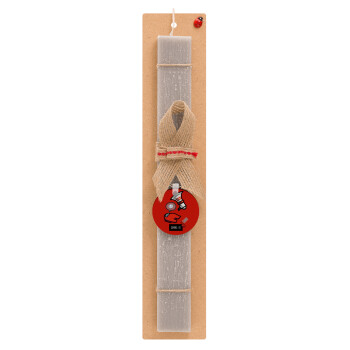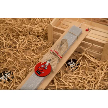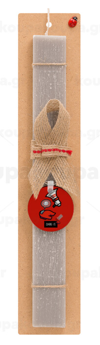 Among US Shhhh!!!, Πασχαλινή Λαμπάδα με ξύλινο μπρελόκ & κερί αρωματικό πλακέ (30cm) (ΓΚΡΙ)