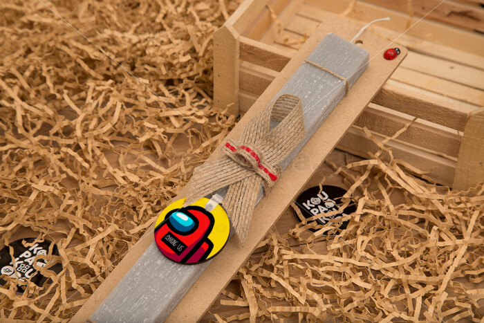 Among US, Πασχαλινή Λαμπάδα με ξύλινο μπρελόκ & κερί αρωματικό πλακέ (30cm) (ΓΚΡΙ)