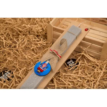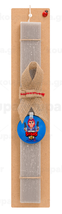 Brawl Stars Colt, Πασχαλινή Λαμπάδα με ξύλινο μπρελόκ & κερί αρωματικό πλακέ (30cm) (ΓΚΡΙ)
