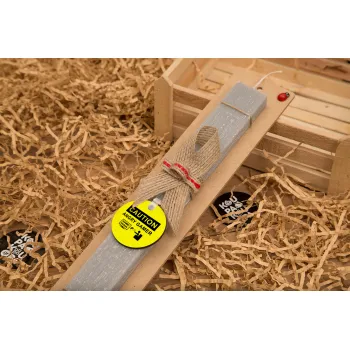 Caution, angry gamer!, Πασχαλινή Λαμπάδα με ξύλινο μπρελόκ & κερί αρωματικό πλακέ (30cm) (ΓΚΡΙ)
