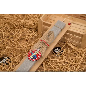 Fallout Vault Boy, Πασχαλινή Λαμπάδα με ξύλινο μπρελόκ & κερί αρωματικό πλακέ (30cm) (ΓΚΡΙ)