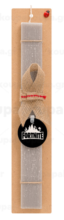 Fortnite, Πασχαλινή Λαμπάδα με ξύλινο μπρελόκ & κερί αρωματικό πλακέ (30cm) (ΓΚΡΙ)