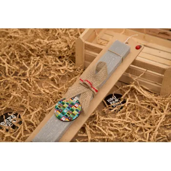 Gaming Controllers, Πασχαλινή Λαμπάδα με ξύλινο μπρελόκ & κερί αρωματικό πλακέ (30cm) (ΓΚΡΙ)