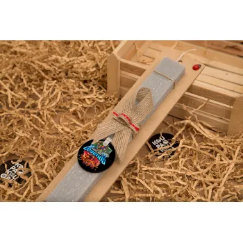 Minecraft legends, Πασχαλινή Λαμπάδα με ξύλινο μπρελόκ & κερί αρωματικό πλακέ (30cm) (ΓΚΡΙ)
