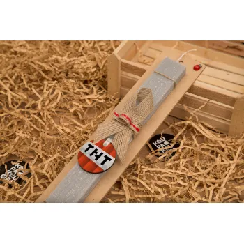 Minecraft TNT, Πασχαλινή Λαμπάδα με ξύλινο μπρελόκ & κερί αρωματικό πλακέ (30cm) (ΓΚΡΙ)