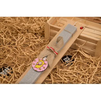 Princess Peach, Πασχαλινή Λαμπάδα με ξύλινο μπρελόκ & κερί αρωματικό πλακέ (30cm) (ΓΚΡΙ)