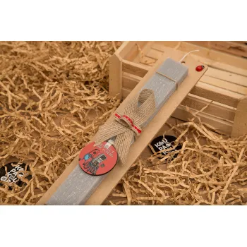 Respect your Elders, Πασχαλινή Λαμπάδα με ξύλινο μπρελόκ & κερί αρωματικό πλακέ (30cm) (ΓΚΡΙ)