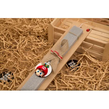 Super mario head, Πασχαλινή Λαμπάδα με ξύλινο μπρελόκ & κερί αρωματικό πλακέ (30cm) (ΓΚΡΙ)