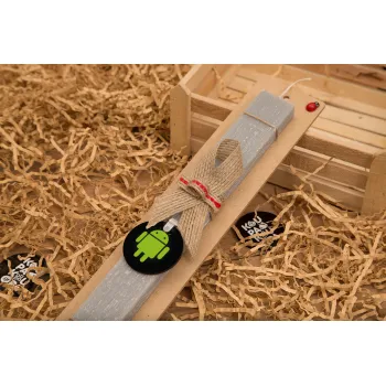 Android, Πασχαλινή Λαμπάδα με ξύλινο μπρελόκ & κερί αρωματικό πλακέ (30cm) (ΓΚΡΙ)