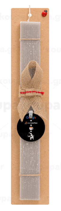 Google + Stack overflow + Coffee, Πασχαλινή Λαμπάδα με ξύλινο μπρελόκ & κερί αρωματικό πλακέ (30cm) (ΓΚΡΙ)