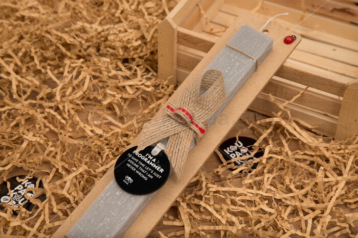 I’m a programmer Save time, Πασχαλινή Λαμπάδα με ξύλινο μπρελόκ & κερί αρωματικό πλακέ (30cm) (ΓΚΡΙ)