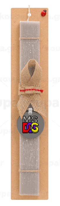 MsDos, Πασχαλινή Λαμπάδα με ξύλινο μπρελόκ & κερί αρωματικό πλακέ (30cm) (ΓΚΡΙ)