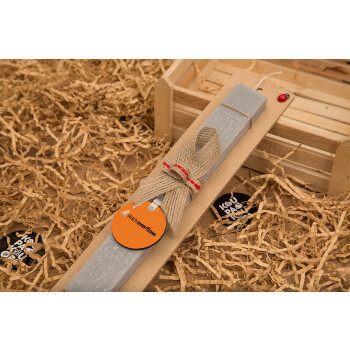 StackOverflow, Πασχαλινή Λαμπάδα με ξύλινο μπρελόκ & κερί αρωματικό πλακέ (30cm) (ΓΚΡΙ)