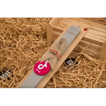 tik tok pink, Πασχαλινή Λαμπάδα με ξύλινο μπρελόκ & κερί αρωματικό πλακέ (30cm) (ΓΚΡΙ)