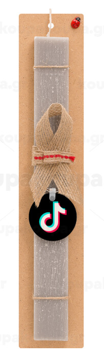 TikTok, Πασχαλινή Λαμπάδα με ξύλινο μπρελόκ & κερί αρωματικό πλακέ (30cm) (ΓΚΡΙ)