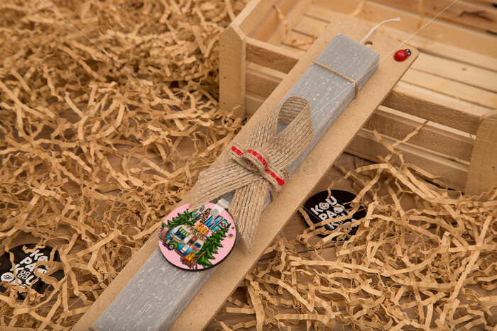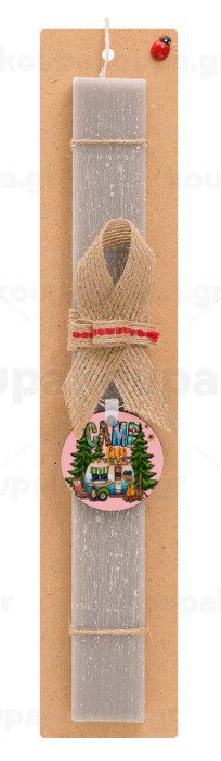 Camp Life, Πασχαλινή Λαμπάδα με ξύλινο μπρελόκ & κερί αρωματικό πλακέ (30cm) (ΓΚΡΙ)