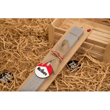 Marlboro, Πασχαλινή Λαμπάδα με ξύλινο μπρελόκ & κερί αρωματικό πλακέ (30cm) (ΓΚΡΙ)