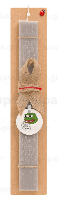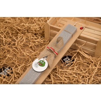 Pepe the frog, Πασχαλινή Λαμπάδα με ξύλινο μπρελόκ & κερί αρωματικό πλακέ (30cm) (ΓΚΡΙ)