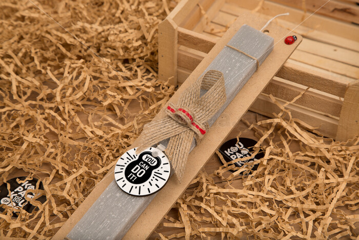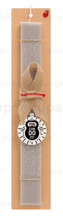 You can do it, Πασχαλινή Λαμπάδα με ξύλινο μπρελόκ & κερί αρωματικό πλακέ (30cm) (ΓΚΡΙ)