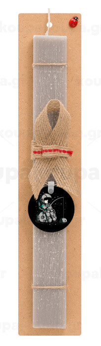 Αστροναύτης ψαρεύει στο διάστημα, Πασχαλινή Λαμπάδα με ξύλινο μπρελόκ & κερί αρωματικό πλακέ (30cm) (ΓΚΡΙ)