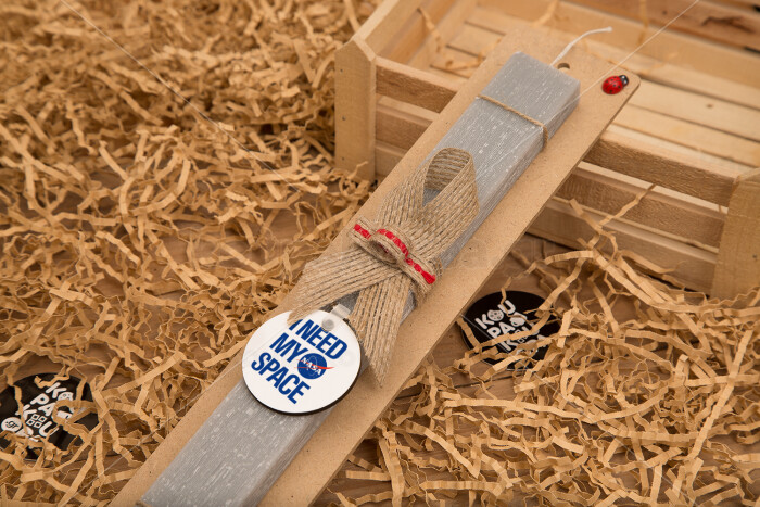 I need my space, Πασχαλινή Λαμπάδα με ξύλινο μπρελόκ & κερί αρωματικό πλακέ (30cm) (ΓΚΡΙ)