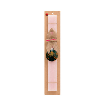Πασχαλινή Λαμπάδα με ξύλινο μπρελόκ & κερί αρωματικό πλακέ (30cm) (ΡΟΖ) με θέμα Τέχνες