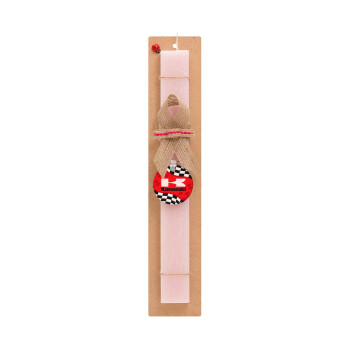 Peugeot, Πασχαλινή Λαμπάδα με ξύλινο μπρελόκ & κερί αρωματικό πλακέ (30cm) (ΡΟΖ)