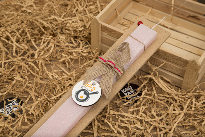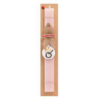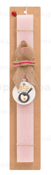 Let's cooking, Πασχαλινή Λαμπάδα με ξύλινο μπρελόκ & κερί αρωματικό πλακέ (30cm) (ΡΟΖ)